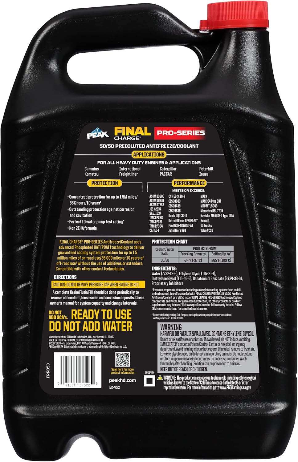 PEAK Final Charge PRO-Series 50/50 Prediluted Antifreeze and Coolant for All Heavy Duty Engine Cooling Systems 6/1 GAL